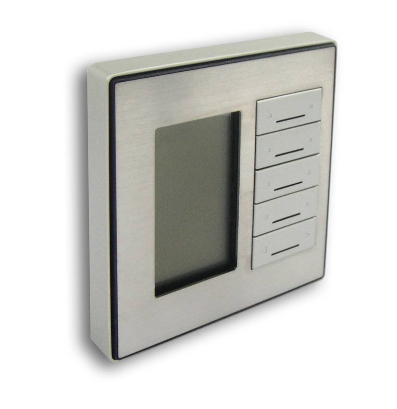 All in one wall Switch, the DDP is an elegant and easy to use wall panel that eliminates wall agony. It has built in thermostat, changeable labels to identify every button use, can control lights, curtains, temperature, music, and TV. DDP has easy fascia color and material changing flexibility to help match any interiors. The DDP has screw less mounting mechanism, security lock, easy upgrade mini-USB, re-locatable IR receiver probe, LED backlit buttons and LCD screen. DDP can accept Multi languages, Icons and Graphics